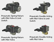 气动驱动球阀,提供一个非常快的循环时间,大约0.5秒到1秒,取决于驱动器模式或型号。Gemini气动球阀的运转是利用一个50 - 125 psi的气源。输送空气可以通过直接安装一个配备NAMUR接口的电磁阀,或通过一个与驱动器上的1/8"NPT螺纹孔连接的远程电磁阀。Gemini阀门的3GP Series 3-way & 4GP Series 4-way电磁先导阀,可供应A500系列的气动驱动器。